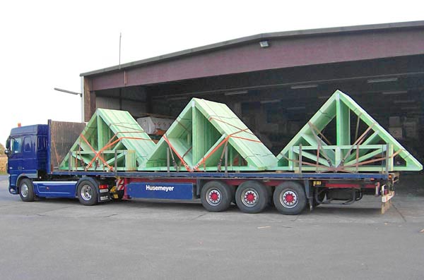 Der Transport der fertigen Binder zur Baustelle