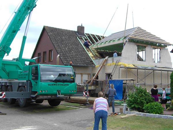 Gauben und viele weitere Elemente werden vorgefertigt und mit Hilfe eines Schwettmann-Ladekrans gerichtet